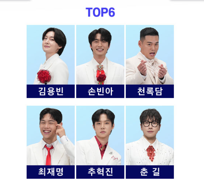 미스터트롯3 TOP6가 전원 출연하며, 매 회차 다채로운 개인 무대와 합동 무대가 준비되어 있습니다.