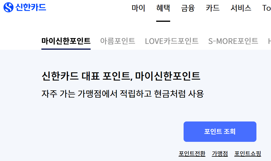 | 신한카드 | 마이신한포인트 | 높음 (현금화 가능) |