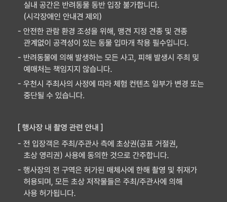 • 햇빛 대비 모자, 선크림, 쿨링 시트 필수!