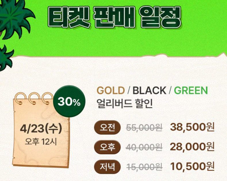 - 4월 25일(금) 12시: 일반 예매 오픈
