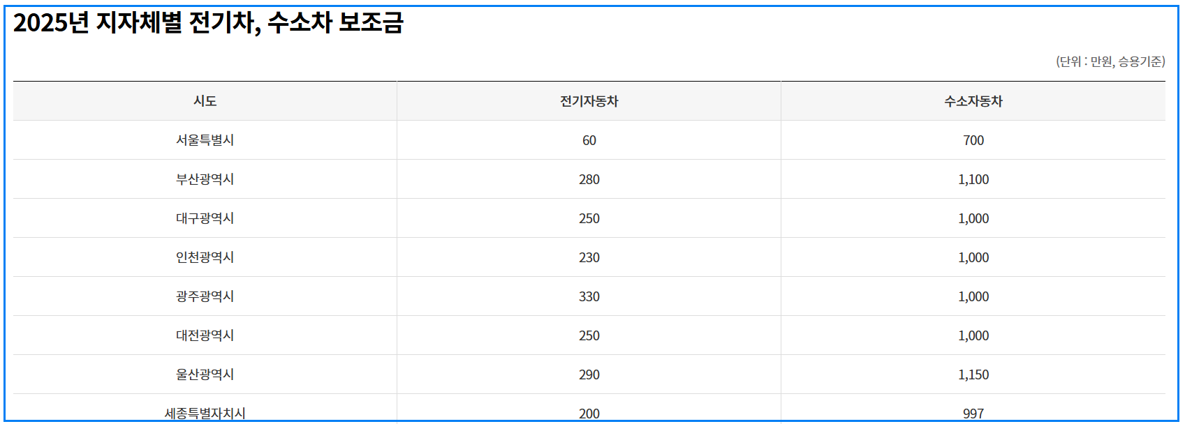 ✅ 지역별 전기차 보조금 총액 비교 (2025 기준)