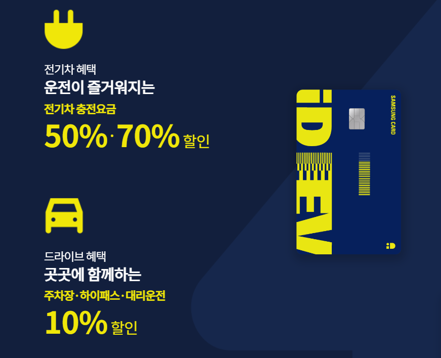 1. 삼성 iD EV 카드 – 최대 70% 할인, 생활 혜택까지