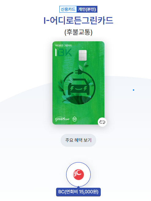 | IBK 그린카드 | 20~40% | 대중교통 포함 | 에코머니 | 15,000원~ | 친환경 특화 |