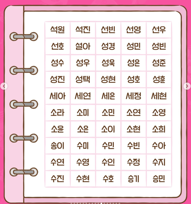 ※ 흔한 이름부터 독특한 이름까지 다양하게 포함되어 있으니 한 번쯤은 꼭 찾아보시는 걸 추천드려요!
