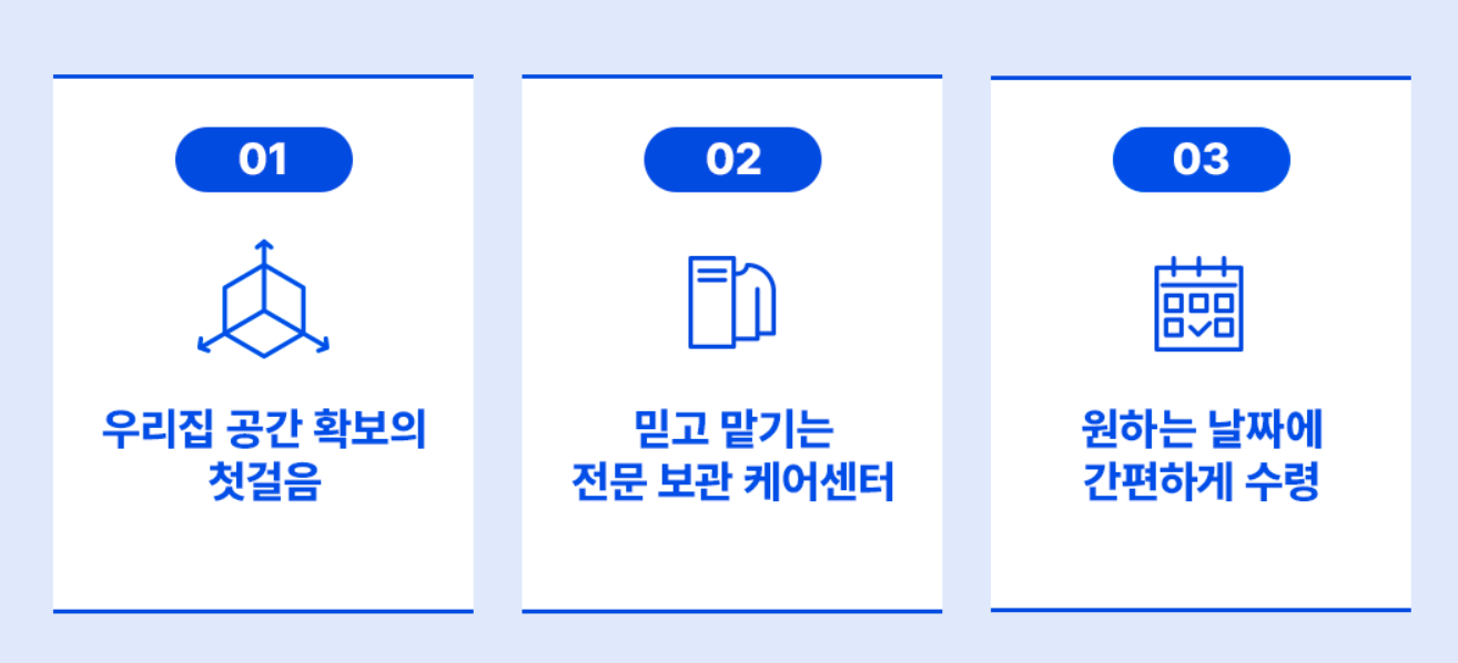 전문 창고에 보관해주고 필요할 때 다시 꺼내 배송해주는 시스템이라, 공간 절약 + 정리 고민 해결까지 한 번에!