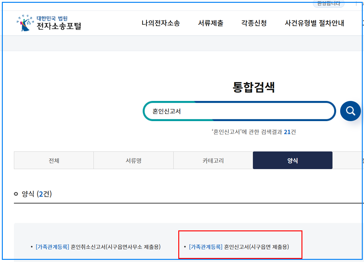 혼인신고서 양식은 어디서 구할 수 있을까요?