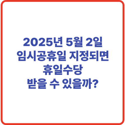 2025년 5월, 대형 황금연휴가 코앞으로 다가오면서 많은 직장인과 알바생들이 하나의 질문을 던지고 있습니다. 바로 **"5월 2일이 임시공휴일로 지정되면 휴일수당 받을 수 있을까?"**라는 점이죠. 평소 공휴일과는 달리 '임시공휴일'은 약간의 법적 애매함이 존재해 더더욱 궁금증을 자아냅니다.