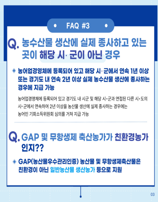 ※ 주의: 다른 지역에서 농사지어도 경기도 등록 및 실거주 기준 충족하면 가능합니다.