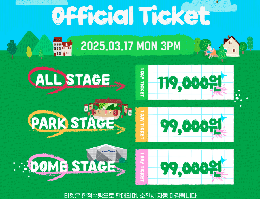 - PARK STAGE권: 99,000원 (야외 무대 관람 전용)
