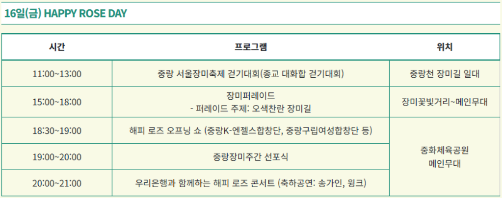 2. 2025 중랑 서울장미축제 일정 및 장소