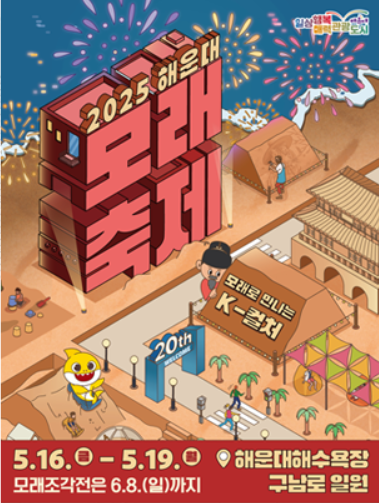 올해로 20주년을 맞이한 2025 해운대 모래축제가 더욱 화려하게 돌아왔습니다! 부산의 대표 여름 축제인 이번 행사는 2025년 5월 16일(금)부터 5월 19일(월)까지 해운대해수욕장과 구남로 광장에서 개최되며, 모래조각 전시는 6월 8일(일)까지 이어집니다.