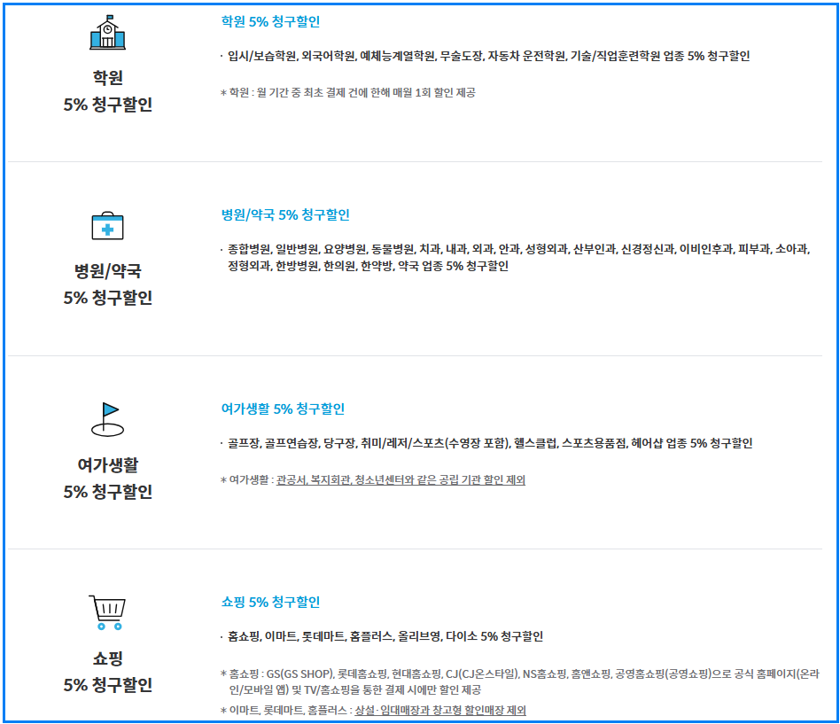 ✅ 여가생활 5% 청구할인