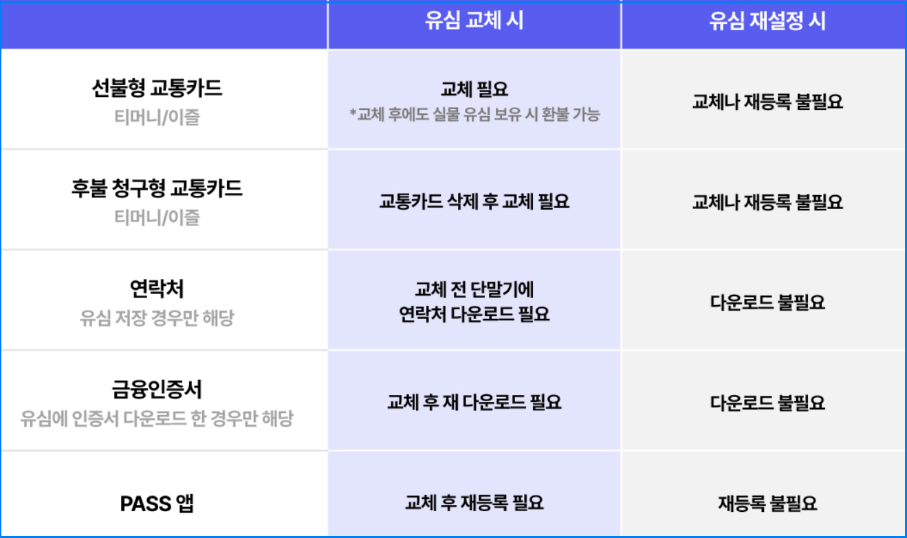 | 항목 | 기존 유심 교체 | 유심 재설정(포맷) |